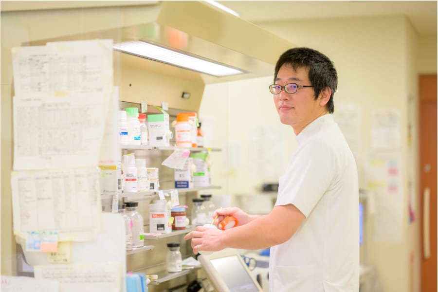 院内で使用する薬(内服、外用、注射など)の購入、在庫管理、各外来、各病棟への供給を行っています。 治療に使用される麻薬、向精神薬、特定生物由来薬品(血液を原料に作られた薬)の管理に関しては特に厳重な管理を行っています。